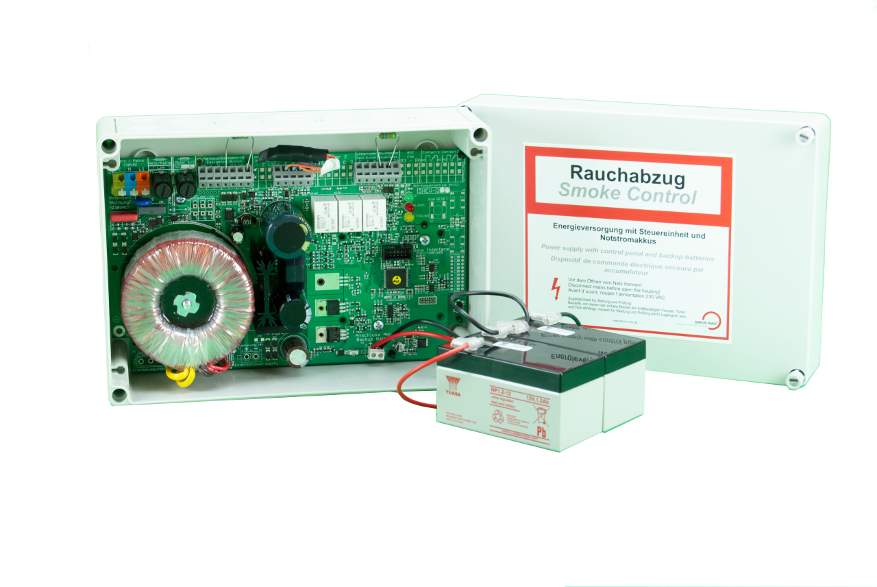 The SIMON PROtec control systems SHEV® and M-SHEV are known for their large range of functions and their flexibility in design. Nevertheless, there is a demand for systems with reduced functional scope in order to realize more cost-effective projects. For this reason, we have decided to introduce an "eco series", which offers the full SHE functionality according to the known standards, but is limited in the comfort functions. Depending on the power requirements, we now offer the types SHEV-2-eco, M-SHEV-10-AP-eco and M-SHEV-24 / 1-2-eco.
